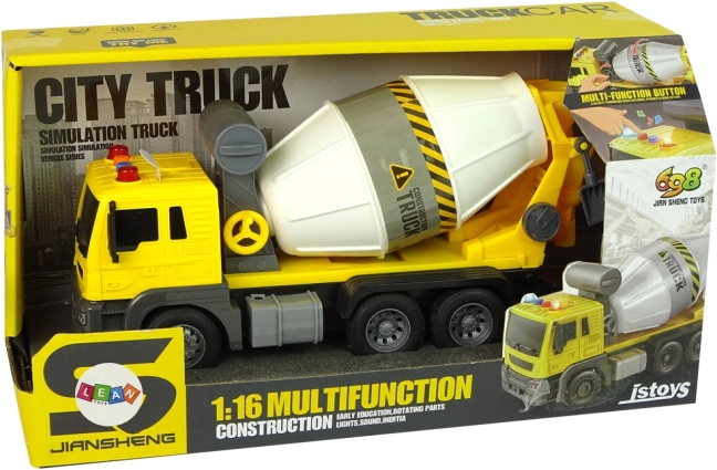 Denne gule betonblander efterligner en rigtig entreprenørbil og udvikler både fantasi og finmotorik. Den drejelige tromle og den vippende udtømningsrende muliggør realistisk byggeleg, mens lyd- og lyseffekter (kørsel, horn, blink) giver ekstra dynamik.