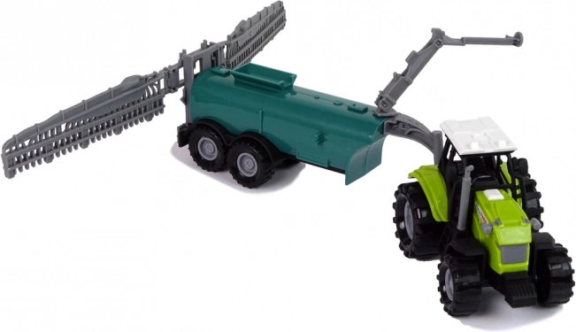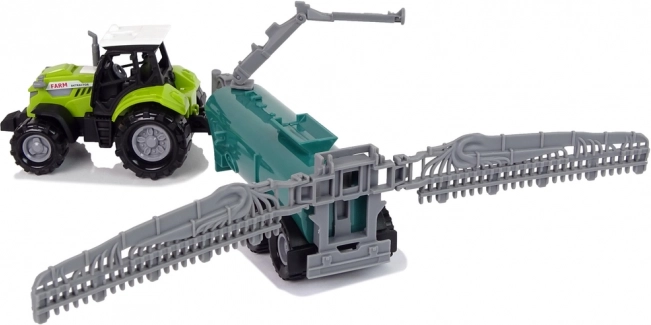 Denne detaljerede traktor i klassisk grøn er ideel til leg både inde og ude. Med den aftagelige sprøjte og udklappelige arme kan børn realistisk efterligne markarbejde og udforske landbrugsmaskinernes verden.