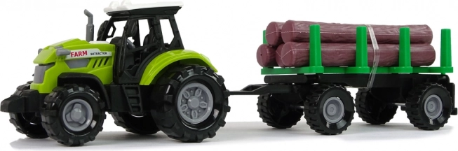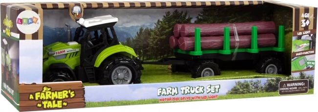 Denne grønne traktor med aftagelig trailer og plasttræstammer giver børn en autentisk gårdoplevelse. Med et tryk på knappen aktiveres motor- og kørselslyde, den forreste forlygte oplyser vejen, og det realistiske design styrker fantasi og kreativ leg.