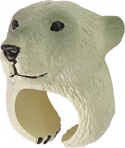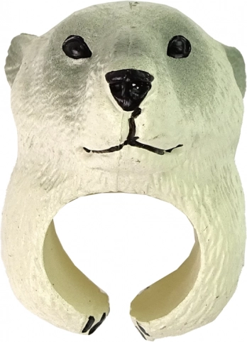 En sød ring med motiv af en isbjørn vil glæde små dyreelskere og støtte læring gennem leg. Den er lavet af plast, malet med non-toksiske farver og takket være den åbne bagside tilpasser den sig nemt til børnehænder. En fin accessory til kostumer, til mini dukketeater og til hverdagens sjov.