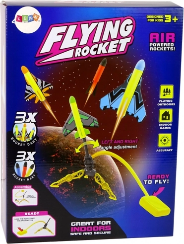 Opsæt basen, sæt raketten på dysen, træd på pumpen, og se raketten flyve højt op i luften. Enkel lufttryksmekanisme uden ledninger og batterier giver hurtig og intuitiv leg hvor som helst – i haven, i parken eller derhjemme.
