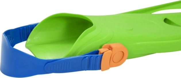 Finnerne med justerbar rem tilpasses let foden, forbedrer fremdrift og stabilitet i vandet. Latexfri materialer og UV-beskyttelse øger sikkerhed og komfort ved brug i sol, pool og hav.