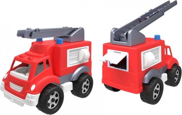 Dette brandbil-sæt er enhver lille helts drøm. Børn kan nyde timevis af leg, udvikle fantasien og efterligne rigtige brandmænd. Med den justerbare stige bliver legen endnu mere spændende, fordi den kan trækkes ud og skubbes ind efter behov.