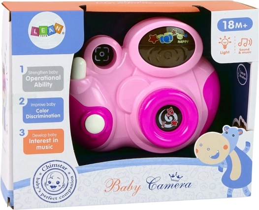 Det lyserøde interaktive børnekamera vil glæde små opdagelsesrejsende fra 18 måneder. Det tilbyder lyseffekter, lukkelyd og 3 muntre melodier, som udvikler hånd-øje-koordination og sanserne.