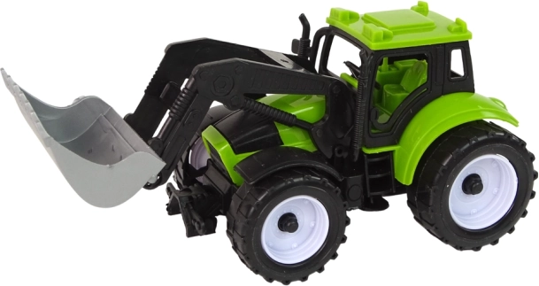 Traktoren er udstyret med en frontlæsser, som kan hæves og sænkes. Perfekt til at læsse “korn” eller sand og til at udvikle finmotorikken.