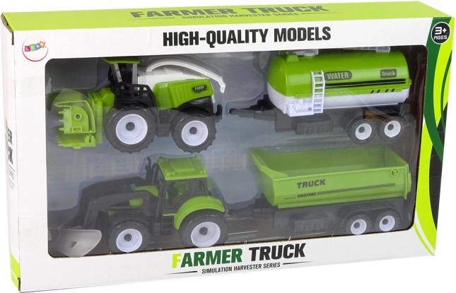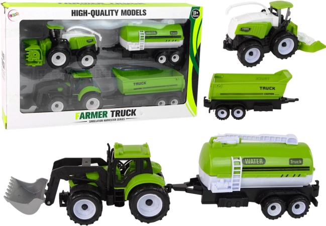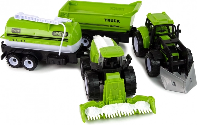 Traktor, mejetærsker og trailere med detaljeret udførelse gør det muligt for børn at efterligne virkelige aktiviteter på gården – fra høst til transport af vand og materialer.