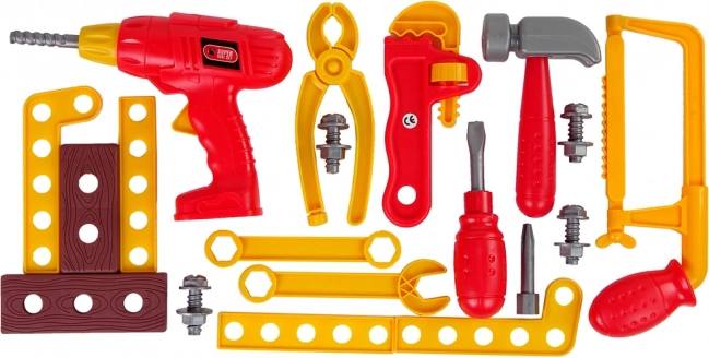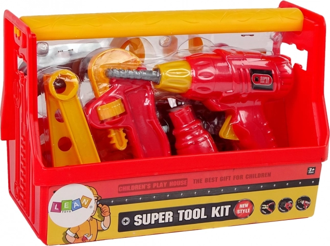 Komplet børnesæt til små gør-det-selv-entusiaster i en praktisk kuffert. Indeholder boremaskine til små hænder, skruetrækker, hammer, tang, svensknøgle, skruestik og forbindelsesdele. Let plastmateriale, iøjnefaldende rød farve og mulighed for at opbevare alt i en bærbar kasse understøtter motorisk udvikling og kreativ leg. Velegnet fra 3 år, med CE-certifikat.