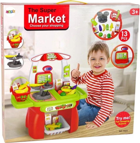 Et sjovt og lærerigt sæt til små ekspedienter og kunder. Børn lærer at genkende forskellige typer madvarer, træner logisk tænkning og grundlæggende indkøb. Sættet indeholder en indkøbskurv, et kasseapparat, en vægt og forskellige madvarer. Sikker udførelse og moderne design vil glæde enhver lille butiksejer.