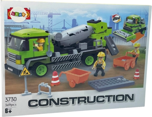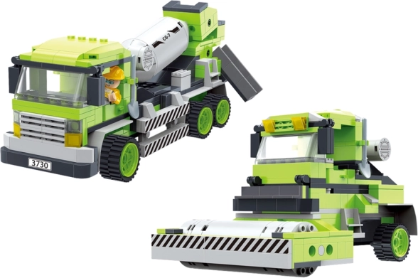 Klodserne er lavet af holdbar plast. De glæder sig over det store antal bevægelige dele og mulighederne for selvstændig skabelse. Den næste fase er legen, hvor du fra de færdige køretøjer skaber din egen byggeplads. Cementblanderen med roterende "tromle", åbne døre eller køretøjet med roterende valse vil fascinere et barn i mange timer!