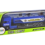 Lastbilens udseende er inspireret af rigtige køretøjer med praktisk anvendelse på vejen og giver enhver lille samler mulighed for at udvide sin samling. Den gennemgående blå farve med hvide “POLICE”-tryk giver et realistisk udseende. Tanktraileren er let at styre og giver stor manøvredygtighed.
