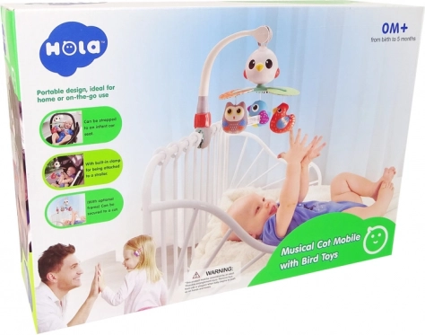Karrusellen er lavet af holdbar plast og bløde tekstile hængere i klare farver. Den universelle klemmefastgørelse sikrer hurtig montering på de fleste tremmesengsrammer og på barnevognsbøjler – ideel både hjemme og på farten.