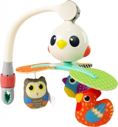 Denne farverige karrusel med spilledåse giver babyen de første visuelle, auditive og taktile stimuli. Ved den blide rotation rækker barnet ud efter de plyssede dyr, hvilket fremmer øje–hånd-koordination og kropsbevidsthed. Takket være den optimale vinkel har barnet et fremragende overblik over alle elementer, og melodierne beroliger behageligt til søvn.