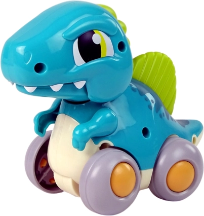 Den søde dinosaur på hjul vil glæde ethvert lille barn og støtte dets første skridt. Tryk den mod gulvet, slip, og se den køre fremad. Udvikler motorik, farve- og formopfattelse, åbner og lukker munden under kørslen og kører jævnt på flade overflader. Fremstillet af sikre, kvalitetsmaterialer med CE-certificering (EN 71).