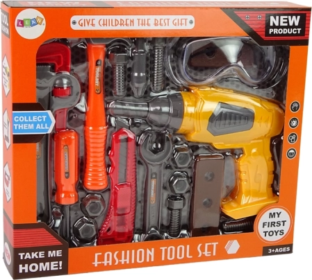 Dette sæt er udstyret med en batteridrevet boremaskine, som simulerer ægte boring og udsender realistiske lyde. Derudover indeholder det nøgler, skruetrækker, hammer og andre værktøjer til kreativ leg. Alle dele er sikkert opbevaret i den farverige emballage, som i sig selv giver indtryk af rigtige værktøjer.