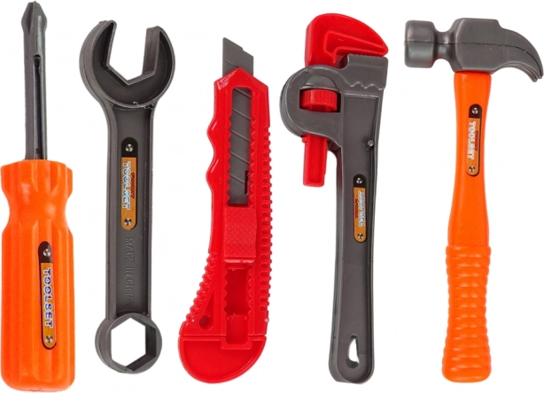 Sættet indeholder realistisk designede værktøjer som skruetrækker, nøgle og hammer, der understøtter udviklingen af fantasi og rolleleg.