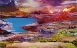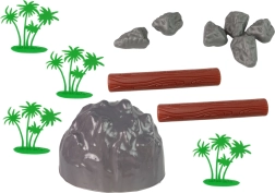 - 2 stykker træ, 4 palmer, en stor klippe, 6 små klipper