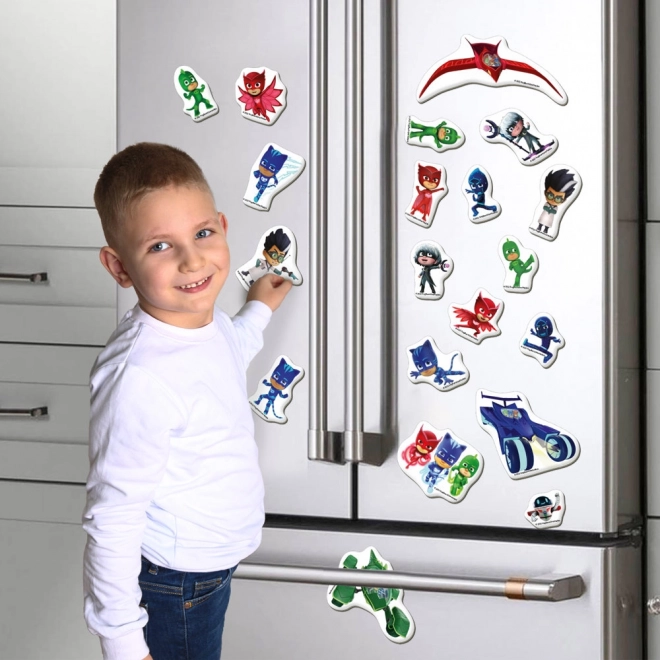 Opdag magien ved heltene fra PJ MASKS med et farverigt magnetsæt, der giver timevis af kreativ underholdning. Magneterne er holdbare, har behagelige former for små hænder og er takket være de sikre, afrundede kanter velegnede til børn fra 3 år. Børn kan frit skabe scener og historier på køleskab, magnettavle eller andre metaloverflader.