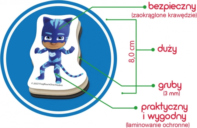 Sæt med 22 PJ MASKS-magneter til børn fra 3 år. Holdbare, sikre og farverige magneter med populære helte – ideelle til køleskab og magnettavler.
