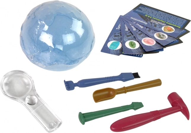 Opdag geologiens og arkæologiens verden med dette sjove sæt til børn. Sættet lader børn grave ægte mineraler frem fra “gipsjord” med sikre værktøjer, undersøge dem med en lup og lære deres navne ved hjælp af læringskort. Udvikler finmotorik, tålmodighed og nysgerrighed – en ideel gave til små opdagere.