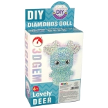Pakkens indhold: rensdyr-vedhæng (højde ca. 7 cm), 2 pakker farvede krystaller, bakke til krystaller, 2× lim i tube, vokspen og blyantspidser.