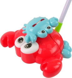 Det interaktive skubbelegetøj krabbe bringer ikke kun glæde til børnene, men stimulerer også deres hørelse og syn. Når børnene skubber krabben fremad, hører de en behagelig klokketone. En stor rød krabbe med en lille blå krabbe på toppen, der drejer ved enhver bevægelse fremad.