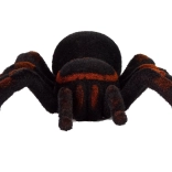 Edderkoppen med sort-brun farvekombination og autentiske detaljer ligner en rigtig tarantella, hvilket gør den ideel til dekoration eller leg.