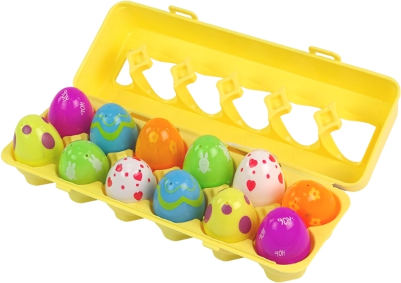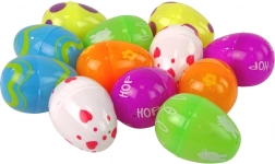Æggene er lette, lavet af plastik og helt sikre for børn. Velegnet som inspiration til en leg, hvor børn leder efter æg med forskellige overraskelser indeni.