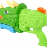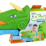 Vi præsenterer vandpistolen Dinosaur Triceratops med en kapacitet på 1330 ml vand og en rækkevidde på op til 8 meter. Denne pistol er dinosaurformet, i grøn-orange farver, og ligner en figur fra populære børnefilm.