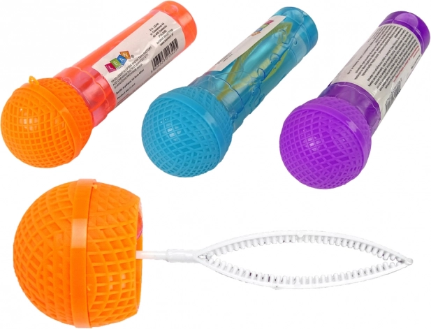 Sæbebobler i mikrofonform er et ideelt tilbehør til fester, børnefødselsdage og almindelig udendørs leg. Den gennemsigtige væske og den praktiske stav gør det nemt at puste eller svinge let og straks trylle smukke regnbuebobler frem. Takket være mikrofon-designet kan børn leve sig ind i rollen som sangere og kombinere bobleskabelse med kreativ leg.