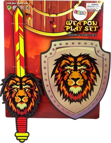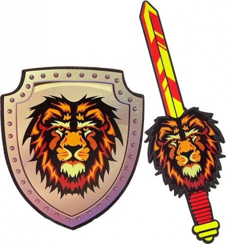 Giv børn en sikker og kreativ legeoplevelse med et ridder-sæt af EVA-skum. Sættet indeholder et sværd og et rundt skjold med løvemotiv, som er lette, bløde og velegnede til fantasileg. Takket være EVA-materialet er sættet sikkert for børn og er et perfekt supplement til et ridder- eller kongekostume.