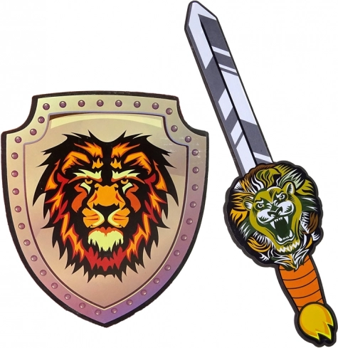 Giv børnene sikker og kreativ leg med et ridder-sæt i EVA-skum. Indeholder et sværd og et skjold med løvemotiv, som er lette, holdbare og skånsomme for børn. Det perfekte tilbehør til et ridder- eller kongekostume, der udvikler fantasi, mod og ære.