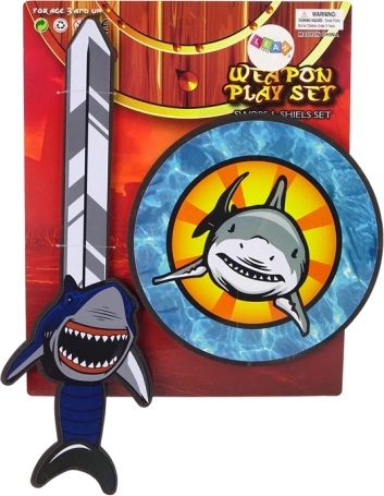 Ridder-sættet af kvalitets EVA-skum er ideelt til hjemmelege og rollespil. Designet med haj på både sværd og skjold begejstrer små eventyrere og styrker deres fantasi, mod og fair play.