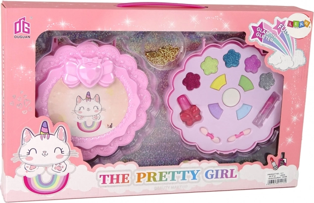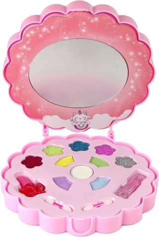 Makeupsættet er perfekt til kreativ leg, udvikling af fantasi og kunstneriske færdigheder. Takket være den kompakte palette med sødt design kan børn nemt tage deres udstyr med på farten.