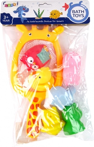 Dette sjove og farverige sæt er ideelt til bad ikke kun i karret, men også i havepoolen. Det er den perfekte løsning til forældre, hvis barn er bange for vand og ikke kan lide at bade. Takket være de farverige legetøj formet som dyr, vænner børnene sig hurtigt til vandet. Legetøjet har små huller, hvor vand sprøjter ud ved tryk, hvilket vil underholde børnene. Du kan finde på en leg, hvor du prøver at fange alle dyrene med nettet, mens vandets bevægelse gør jagten endnu mere spændende.