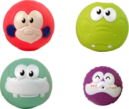 Sættet indeholder fire gummibolde med dyremotiver som krokodille, flodhest, fisk og abe, der sprøjter sjovt med vand, når de trykkes. Basketballnettet har lynlås og bliver nemt til opbevaring af legetøj. Hurtig tørring forhindrer skimmeldannelse.