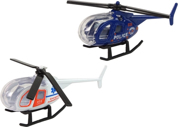 Sættet indeholder fire forskellige helikoptermodeller med unikke designs og farver: brandvæsen, politi, militær og ambulance/redning. Hver helikopter er lavet af en kombination af metal og plast, hvilket sikrer deres lethed, holdbarhed og sikkerhed under leg.