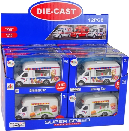 Legetøjets drivkraft er trit - træk blot tilbage og slip, for at få køretøjet til at køre fremad. Interiøret er meget detaljeret og inkluderer en åbningsdør fra en side. Fremstillet af plast, det er let og sikkert for børn.