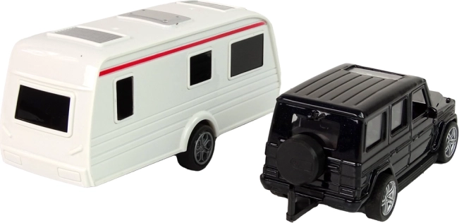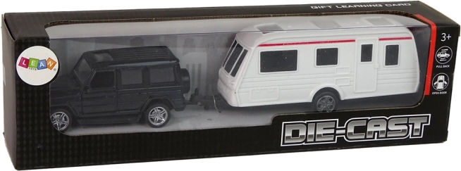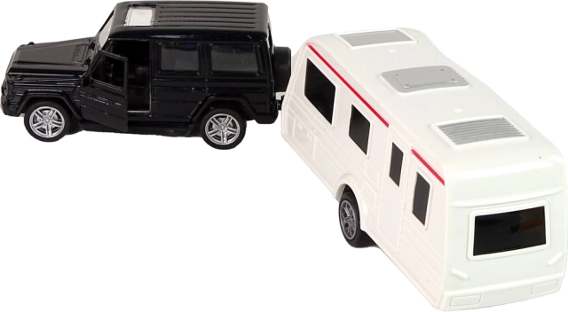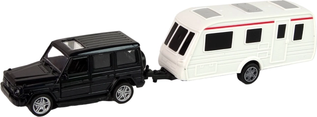 Legetøjet består af en modelbil, designet med fokus på komfort, samt en campingtrailer. Bilen har baghjulstræk – træk den blot tilbage og se den køre fremad. Dørene på SUV'en kan åbnes.