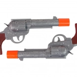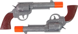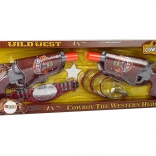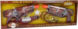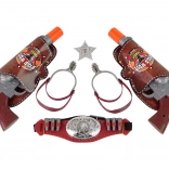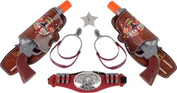 Dette komplette cowboysæt forvandler ethvert barn til en modig lovens vogter. Når man trykker på aftrækkeren, afgiver revolveren en realistisk skudlyd (AG13-strømforsyning), mens bæltet med hylstre holder pistolerne lige ved hånden. Sikre orange spidser og kvalitetsplast sikrer bekymringsfri leg både inde og ude.