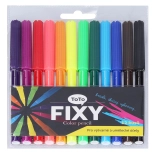 Dette sæt med farvede tuscher indeholder 12 stk., som er ideelle til børn fra 3 år. Takket være deres kompakte størrelse og lave vægt er de nemme at have med og velegnede til brug hvor som helst – i skolen, derhjemme eller på farten.