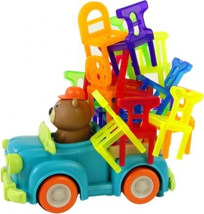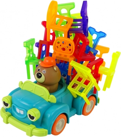 Et sjovt familiespil, hvor I stabler farverige små stole på en bevægelig lille bil for at bygge det højeste tårn muligt. Træner finmotorik, øje-hånd-koordination, logisk tænkning og tålmodighed. Med 48 stole i klare farver og simple regler er det ideelt til børn fra 3 år og voksne.