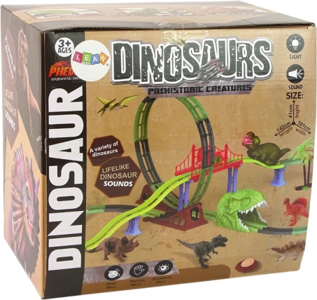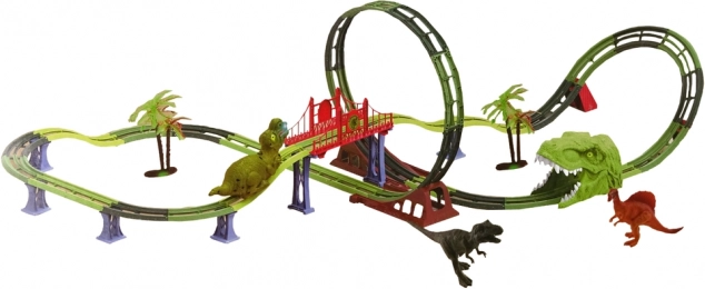 Denne store racerbane med dinosaurer er en fantastisk gave til små elskere af forhistorien. Børn kan bygge deres egen dinosaurpark med broer, tunneler og en markant spiral, hvor en dinosaur på hjul suser af sted. Når kontakten tændes, kører figuren, og takket være effekterne udsender den et autentisk dinosaurbrøl og lyser op.