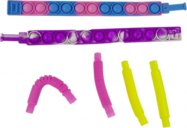 Fleksible pop-tubes og strækkelige slanger kan trækkes ud, forbindes og formes – perfekte til motoriktræning og energiregulering.