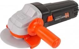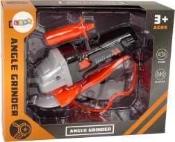 Sættet indeholder en batteridrevet slibemaskine, der har et autentisk sort-orange design. Når man trykker på knappen, drejer skiven som en rigtig slibemaskine. For at sikre sikkerhed under leg er der beskyttelsesbriller til rådighed.