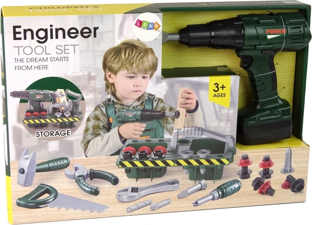 Støt dit barns fantasi og håndværksmæssige færdigheder med dette fantastiske gør-det-selv sæt! Børn kan efterligne hjemmets håndværker og udvikle deres kreativitet og logiske tænkning med dette legetøj. Sættet indeholder en batteridrevet boremaskine og andre værktøjer, der passer til en lille mester.