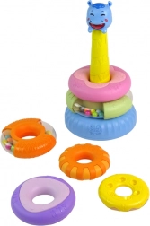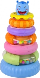Uddannelsespyramiden består af seks farverige ringe, der kan stables i forskellige rækkefølger for at skabe en pyramide. På toppen af pyramiden er der en sød, smilende flodhest. Hver ring har en forskellig størrelse og farve, hvilket hjælper børn med at lære at skelne mellem farver, størrelser og former, samtidig med at de øver koordination. På denne måde udvikler legen også kognitive evner og logisk tænkning, hvilket er afgørende for dit barns korrekte udvikling!