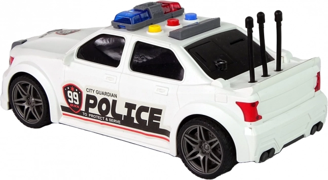 Ved aktivering høres realistisk lyd af motorstart og en klassisk politisirene, hvilket gør legen endnu mere spændende og overbevisende.