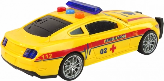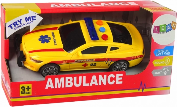 Den hurtige og robuste gule ambulance med markante “Ambulance”-tryk fører børnene direkte ind i centrum af redningsaktionen. Når knapperne trykkes, tændes blå dioder over kabinen, og realistiske lyde høres – motorstart, horn og advarselssirene. Takket være friktionsdrevet er det nok at trykke, trække bagud og slippe, så kører bilen selv frem.