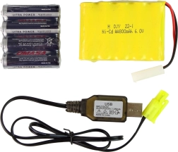 Pakken indeholder alt, hvad du behøver for at komme i gang med det samme – RC-bil, fjernbetjening, akkumulator, opladningskabel og batterier til fjernbetjeningen. Den ergonomiske fjernbetjening og bilen passer perfekt i små børnehænder.