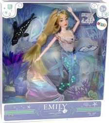 Dukken Emily giver børn masser af kreativ leg. Hendes glitrende hale med skiftende pailletter imponerer ved første øjekast, og den elegante flæsetop understreger havfruestilen. Når halen tages af, kan hun stå på benene og er klar til leg også uden for det undersøiske kongerige.